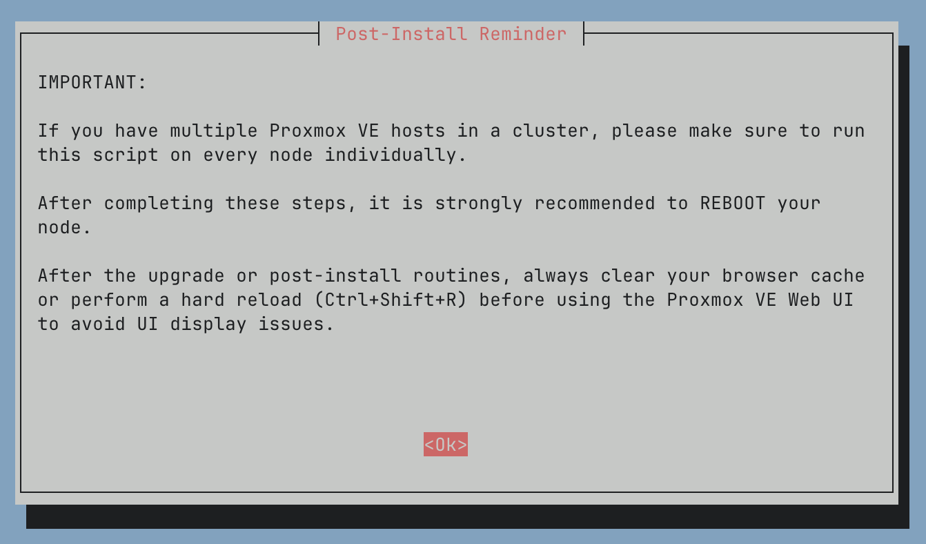 bash -c "$(curl -fsSL https://raw.githubusercontent.com/community-scripts/ProxmoxVE/main/tools/pve/post-pve-install.sh)"