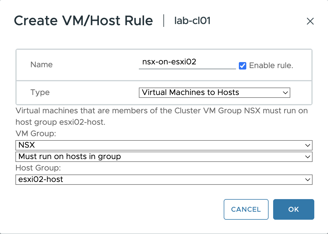 I did this as I don’t have a HA due to resourcing constraints. I want the VM’s to be brought up on the right hosts, so that my lab is stable.